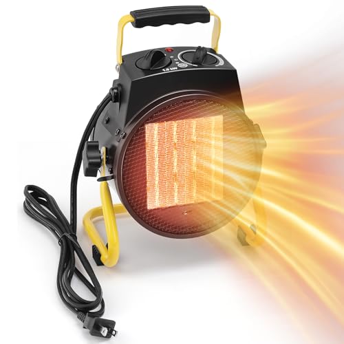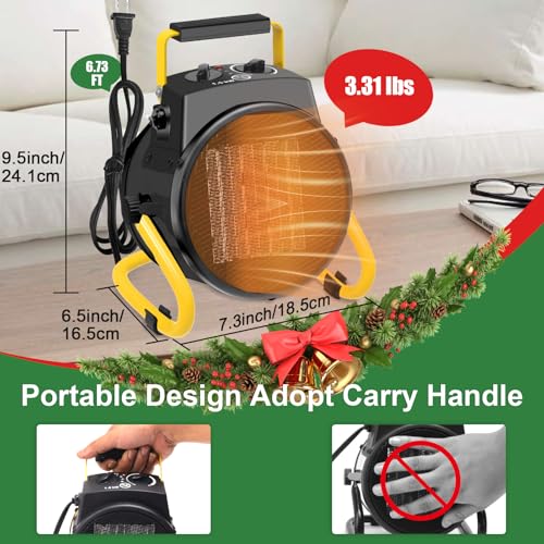 Portable Design with 90° Tilt Adjustability: Weighing only 3.1 pounds, this garage space heater has an 80 inch long cord and a convenient handle that makes it easy to place anywhere without taking up too much space; the 90° tilt adjustment lets you heat right up as you need it; and the compact size makes it perfect for bedrooms, offices and indoor use.