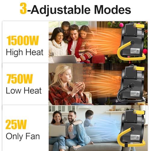 3 Mode Settings: Ready for winter; greenhouse heater with thermostat warms up in just 3 seconds with no preheating required; choice of 750W low heat, 1500W high heat or natural air modes for winter and summer; portable and ideal for garage, providing hot or cool air at low cost