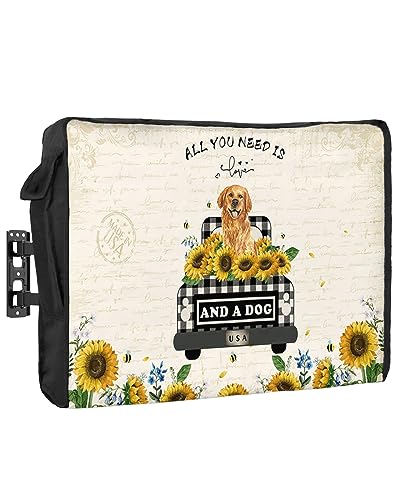 Outdoor TV Cover 80 to 85 Inches,Sunflower Vintage Buffalo Plaid Truck Dog Retro Letters Waterproof and Weatherproof TV Cover with Remote Control Pocket,Flat Screen TV Cover Protector for Outside TV