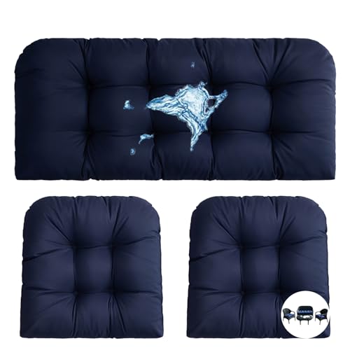 ???3 PIECE Wicker CUSHION SET? Instantly refresh your outdoor living space's wicker 3 Piece Set of Wicker waterproof Chair Cushions.The set includes 2 U-shaped bottom cushions for side chairs size 19”x19”x4” and 1 loveseat bottom cushion size 43”x20”x4”, Each cushion is reversible for extended use.