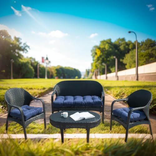 ???Thick and Comfortable?The 10cm/4" high-resilience PP cotton filling of our wicker cushion chair cushion provides excellent sitting support and rebound effect.3 Piece Set of Wicker Chair Cushions features an anti-slip belt that firmly fixes it on your outdoor garden furniture.The straps are simple to use,and the softness of the material ensures that you're comfortable while seated.