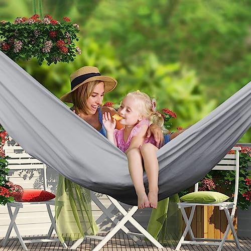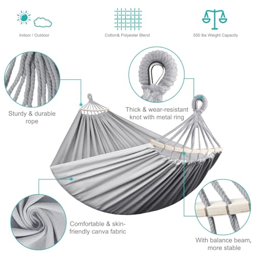 ?Comfortable Canvas Fabric?: Newly upgraded thickened 320G environmental protection canvas fabric with no lint, no fading, no odor, no pilling. The hammock is wear-resistant and comfortable, skin-friendly and breathable. High-strength load-bearing is not easy to break. The size is 275*155CM. (It can be folded and used as a pillow.)