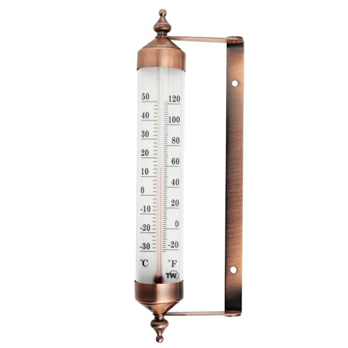STYLISH GARDEN THERMOMETER - Bronze effect design waterproof thermometer for outdoors that looks attractive in any garden or hanging on any patio.