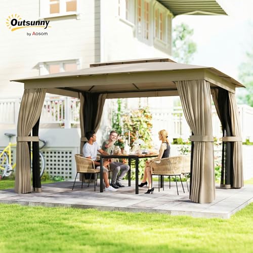 Double-roof Design: Stay cool and comfortable with our innovative double-tier UPF30+ polyester roof pavilion gazebo, designed with built-in netting for superior ventilation and protection from unwanted guests. Plus, drainage holes prevent water pooling