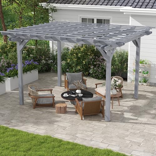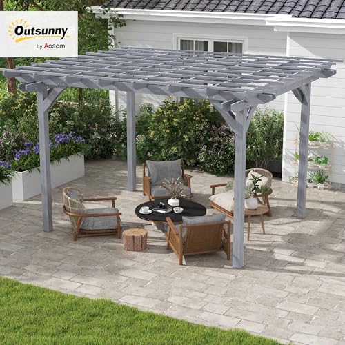 Year-Round Pergola: Intended to be a permanent structure, our garden pergola is made to endure outdoor conditions year-round. It's made of paint-protected fir wood for water resistance. Included are a set of expansion screws and L-plates to mount it to solid ground such as concrete.