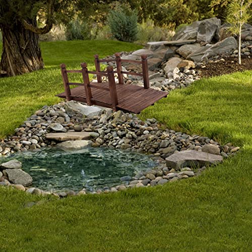 ?PERFECT DECORATION?Arch frame not only enhances the architectural aesthetics, but also greatly makes the bridge more stable. Carbonized color looks fashionable and elegant that makes this wooden bridge be a great decoration in your garden, pond, creek or backyard