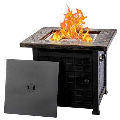[Easy to use & Smokeless flame] the fire pit is equipped with a quick-start electronic ignition system and variable flame control. You can light up the fire table safely and adjust the flame to your desired temperature by turning the control button. The side door panel can be easily opened to change and conceal the propane tank and work with a standard 20-pound propane tank (not included). Safety note: when setting up the propane tank keep the hose and valve away from the high-temperature area.