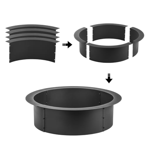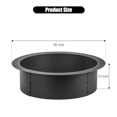 [Rugged Steel Construction]: 36 x 36 x 10 inch fire pit rings. Heavy duty solid steel, high-temperature black paint finish on the surface, make this fire pit liner durable and hard to wear. Designed to withstand extreme heat & harsh weather without damage or rust.