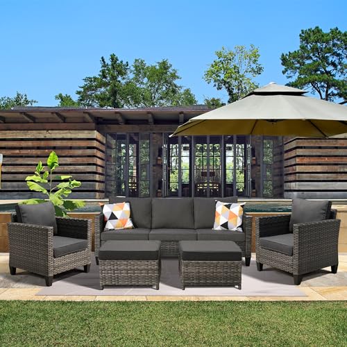 7 Seats Furniture: Ottomans can be combined the 3-seats sofa, couch or single chair into a chaise, it can also be used as a coffee table and side table for outside. OVIOS 5-pieces outdoor patio furniture set comes with all hardware & necessary tools