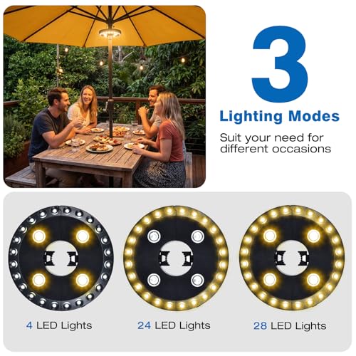 1.3 brightness Mode--press once for 4 LED lights(Dim),press twice for 24 LED lights(Bright), or press three times for 28 LED lights(Super Bright).Suit your need for different brightness on different occasions.