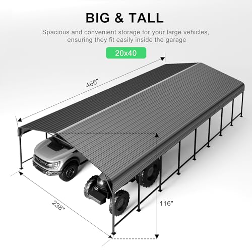 [Improved Safety & Lasting Performance] :This 20x40 heavy-duty metal carport prioritizes safety ,Waterproof sealing tape at roof joints and soft-edged rubber strips reduce the risk of leaks and injuries. A reinforced base and anchoring system ensure secure installation on grass, asphalt, gravel, or concrete. For added stability in storm-prone areas, extra weights or concrete anchors are recommended