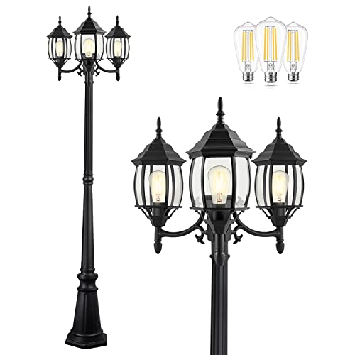 ?Classic Design & Sturdy Material?With a classic and 3-head design, the traditional lamp post is made of sturdy die-cast aluminum and clear glass panels. The black finish pole design adds a vintage style to your outdoor decoration.