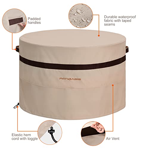 Waterproof Premium Patio Fire Pit Cover : Outdoor patio fireplace covers are made of heavy duty 600D high density oxford fabric with waterproof PVC coating, providing excellent weatherproof like rain, snow, sun, dirt, and lasting the lifetime of your fire bowl.