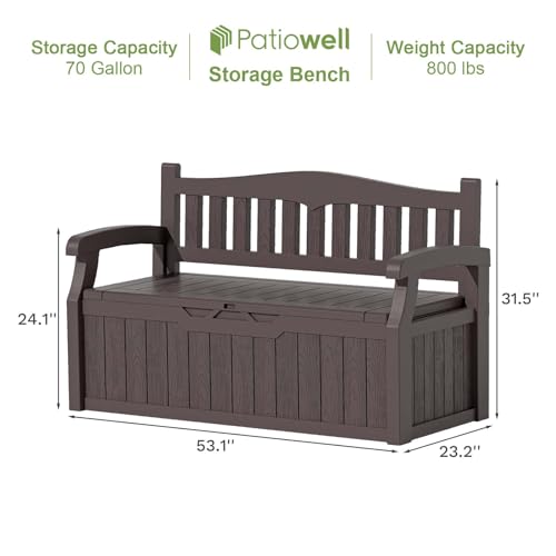 Spacious Storage Capacity: With a generous 70-gallon capacity, this bench offers ample space to store garden tools, outdoor cushions, pool accessories, and more. Keep your outdoor essentials neatly organized and easily accessible.