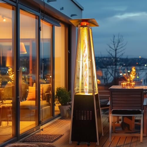 ?????Eye-Catching Flame? Standing at 89.4 inches tall, this pyramid patio heater boasts a captivating glass flame tube that enhances any outdoor setting.