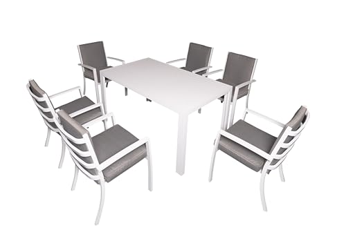 Dimension: Outdoor dining table - L59.09" x W29.13" x H33.4". Max Load: 30KGS/66LBS. Armchairs: Overall: L22.83" x W22.05" x H34.25", Chair Max Load: 160KGS/353 LBS.