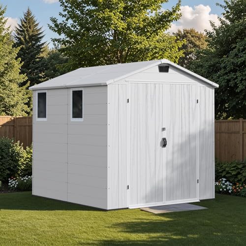 Spacious 6x8 FT Outdoor Storage Shed: This extra-large resin shed (72.6"L×95"W×83"H) delivers massive storage capacity for all your outdoor needs. The roomy interior easily fits lawn mowers, bikes, and bulkier items with space to spare.