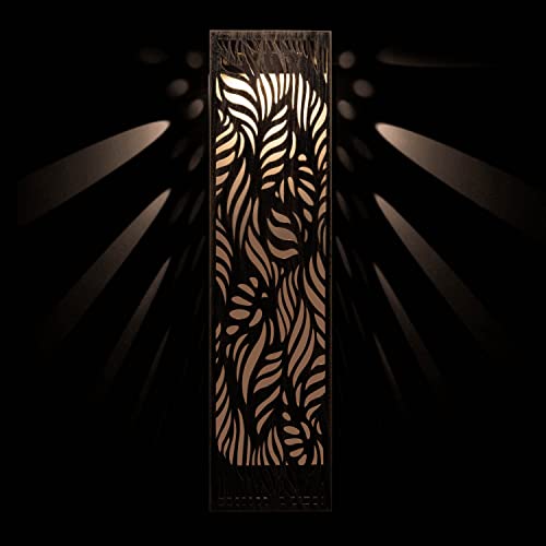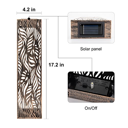 The size of the metal wall art is 17.2 inches high and 4.2 inches wide. It has assembled with a detachable solar LED module, and there are two installation spaces on the top of the back, which help to hang on the wall beside the front porch easily.