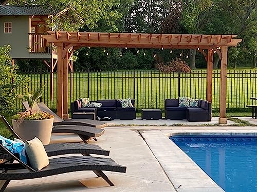 QUALITY MATERIALS: High quality, sustainably harvested wood. Well suited for extreme climates. Pergola kit wood is unstained. Components are pre-cut, pre-drilled and ready to assemble. Kit includes all hardware needed to assemble and step-by-step instructions.