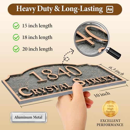 ?Durable Construction: high-density cast metal and acrylic, fully made of premium material without any impurities,no fading,no cracking and no rust, against the harshest weathers and other uncontrollable factors of environment, which protects the address sign itself from cold,heat,moisture,and torrential rain,greatly enhances the longevity of the sign for decades