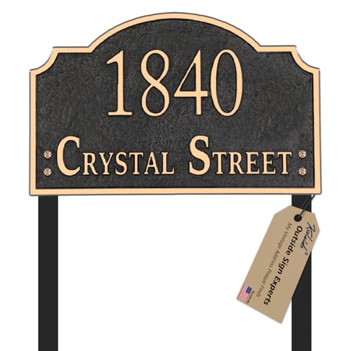?Authentic Refine: our metal address sign is no wobbling and shaking with elegant shape,it is suitable for various occasions,such as grasslands,turf,grages gate,front porch etc, old century vintage style add new feel to your house,embossed finish makes your house numbers no falling off, 4 screws for soild installation,solving any worries about unstable problems.all our efforts are to remove flaws and to make the perfect sign!