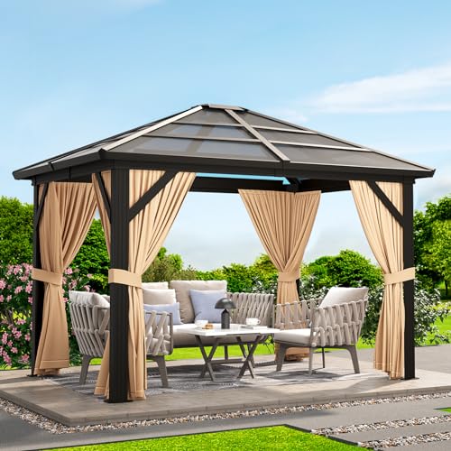 DOUBLE LAYER MESH SIDEWALL: The hardtop gazebo comes with a double-track system for easy sliding. Removable curtains ensure UV and rain protection, while the equipped mesh curtain with zipper keeps good ventilation. Let you enjoy great privacy while having full airflow and a wide view of the outdoors.