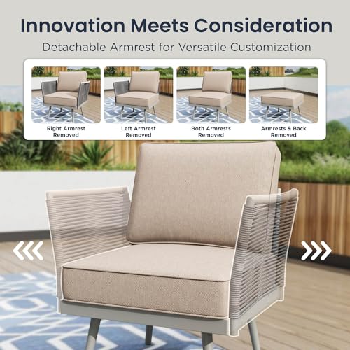 ?Modular Outdoor Sofa Set with Fully Removable Armrests & Backs?This versatile patio set is designed for ultimate customization — every armrest and backrest is fully removable, allowing endless layout possibilities. Transform it into a spacious daybed, cozy loveseat, open bench, or separate chairs in minutes. Ideal for balconies, backyards, decks, and poolside lounging, it easily adapts to any occasion or space.