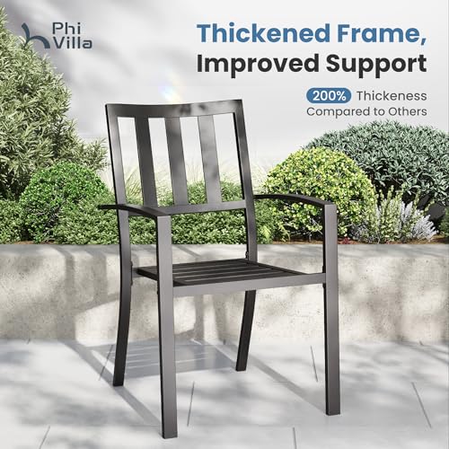 Stackable Metal Chairs: Made of heavy duty steel with classic back pattern, more stable and sturdy. Ergonomically designed height of backrest and seat, can be stacked for easy storage. Spacious and comfortable for any size people. Dimension: 25.2D x 22.8W x 35H, support 300 lbs.