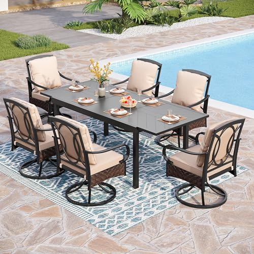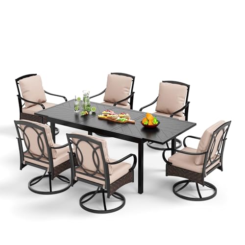 ???????????????????????????????????????????? ???????????????????????? ????????????????????????????????: Every swivel metal dining chair comes with extra large seat cushion and soft pillow, easy to clean. All cushions and pillows are made of texture fabric,which is UV resistant,weather resistant, does not discolor easily