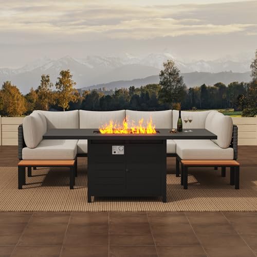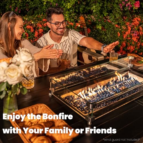 50000 BTU POWERFUL OUTPUT - Enjoy a relaxing moment beside a warm fire table. Propane gas fuel provides stable and green burning, no need to suffer from ash and smog. Using a dual-tube stainless steel burner, the heat output is 55,000 BTU after ignition, which keeps stable and fully burned, providing sufficient warmth.