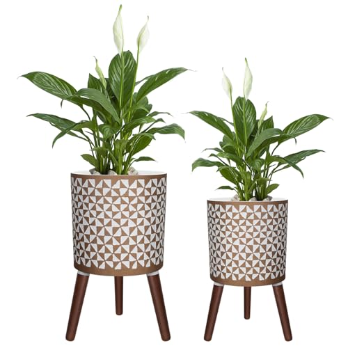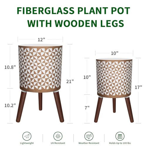 Plant Pots with Stand 2pcs - Indoor Plant Stand with Pot, Planter with Holder, Indoor Outdoor Flower Pots with Drainage Holes