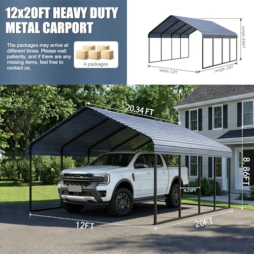 -Streamlined Setup & Long-Lasting Build.This complete 12x20 metal carport kit comes with all components for a straightforward process. Engineered for exceptional stability and longevity, these steel carport kits deliver reliable, year-round performance.