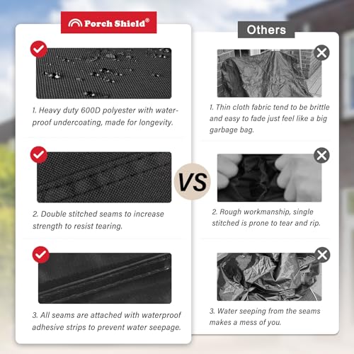 Fadeproof & Waterproof Material - It is made of 600D tough polyester with waterproof undercoating. UV resistant treatment makes it stay vibrant for years. Enhanced with double stitched and sealed seams to prevent the outdoor table cover against sun, rain, snow, wind, and dust.