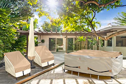 Upgraded Material - If you have problem with your patio furniture getting wet and dirty, Porch Shield patio furniture covers is a great alternative. It is made of 600D Polyester fabric with waterproof undercoating. Give your furniture full protection to against sun, rain, snow, wind, and dust.