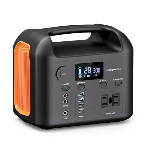?9 Output & Fast Charge? Enjoy versatile charging options with the pangootek portable power station. Features include 1* 60W PD output for fast charging, 1* 30W PD Type-C Output, 2* 110V 300W AC pure sine wave outlets (Peak 600W) for powering various devices, 2* DC outputs (12V/10A) for added convenience, 2* QC 3.0 USB outputs (5V/3A, 9V/2A, 12V/1.5A) for quick charging of compatible devices, and 1* cigarette lighter output (12V/10A) for additional connectivity options.