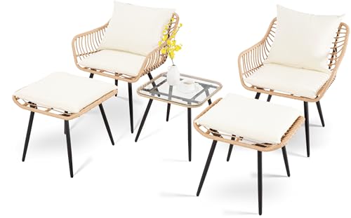 Enjoy Your Outdoor Space:The 5 piece patio furniture set is easily movable,you can use that balcony furniture chairs with ottoman to create a relaxing conversation corner, it is a great value for limited outdoor spaces.
