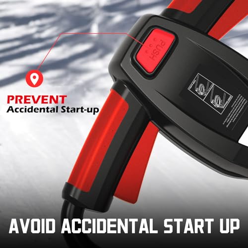 SAFETY DESIGN: The safety design of this corded snow blower prevents accidental start-up and quickly stops the spinning auger and impeller when the user releases the auger trigger.