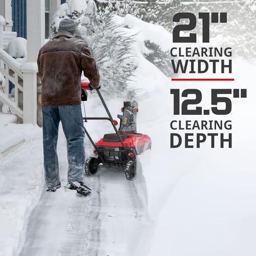 EFFICIENT WORK: The 21-inch width and 12.5-inch height clearing range make snow removal more efficient.The scraper blade of this snow blower machine clears snow efficiently, without damaging the deck or pavement.