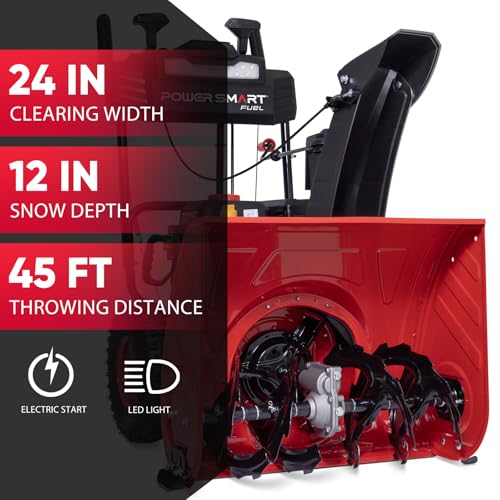 Fast Snow Removal: 24 in. clearing width and 20 in. intake height that makes quick work of deepest snow, clear up to 14-cars driveway.