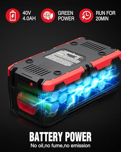 SNOW BLOWER CORDLESS: 40V snow blower with a 4.0AH battery. A full charge provides 15-20 minutes of runtime for clearing light, fluffy snow.