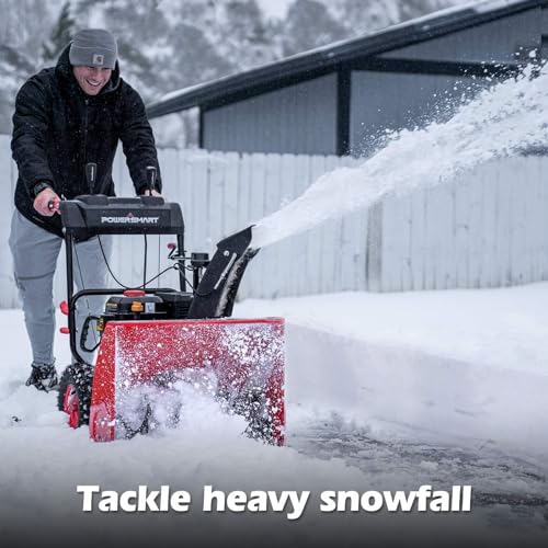 Tackle Heavy Snow: this PowerSmart PS24 snow blower adds LED Light to increase your visibility and safety when working in dark.