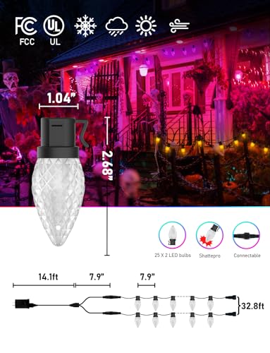 More fun with preset effects : Probro outside Christmas lights C9 offer roof mode, hanging mode, outdoor tree mode, fence mode. Not only create an animated Halloween with their purple-orange temperature, but also choose a colorful preset lighting mode for any occasion including outdoor Christmas light show, fairy party and more.