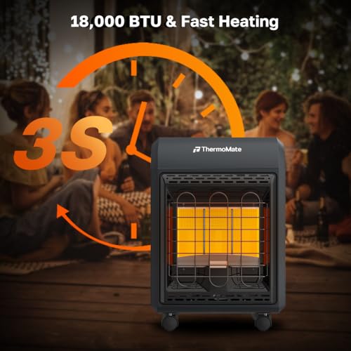 Instant Radiant Heat - The propane cabinet heater with 18,000 BTU heating output and high efficiency, Heats up to 450 sq. ft. Operates up to 69 hours on a 20 lb propane tank on low setting mode(6000 BTU) for garages, construction sites, patio, camping, porch, backyard , etc.
