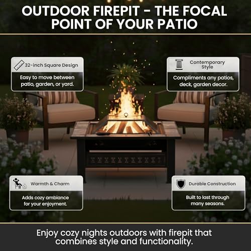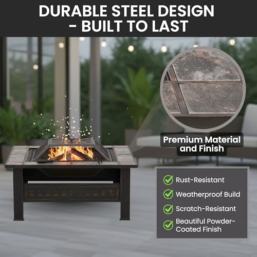 DURABLE DESIGN - Made from powder-coated steel to resist rust, this outdoor fireplace is lightweight and weatherproof for long-lasting use. The steel leg construction and decorative design is a charming and sturdy addition to any yard or patio.