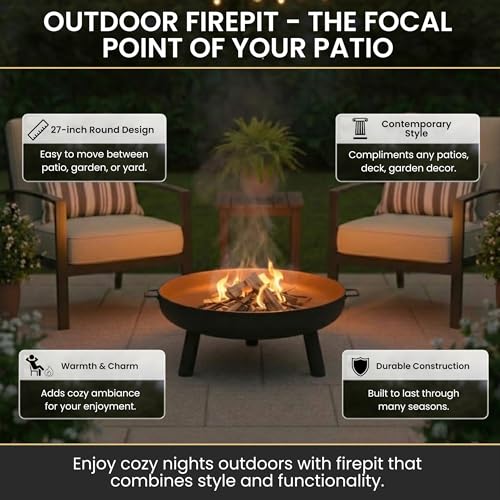 OUTDOOR FIRE PIT - Create lasting memories with family and friends while enjoying a cozy fire with the patio fire pit. Move this outdoor fire pit around your deck, lawn, or patio easily thanks to the lightweight 17.5lbs design.