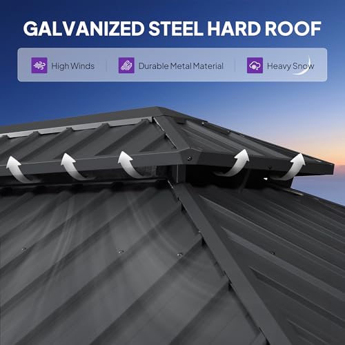 Ceiling Hooks: The versatile hook design is intended to meet a variety of needs. It allows you to hang a fan during hot summer days or add beautiful lighting and decorations. Simply enjoy a cool and well-lit atmosphere under the hardtop gazebo.