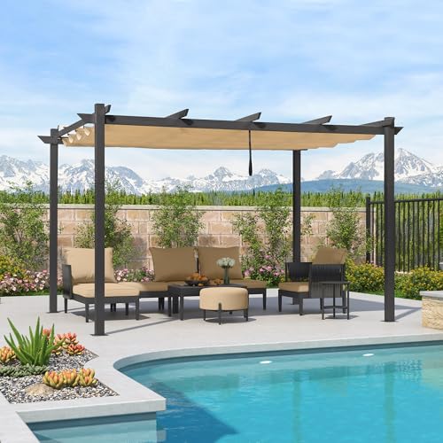Enhanced Extra Protection Roof: Our patio pergola features a sloped roof design that protects the retractable canopy from rain and harmful UV rays. while effectively reducing water accumulation, providing you with an enjoyable outdoor experience.
