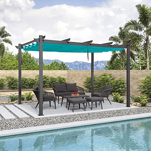 This pergola features 10' X 13'. Easy to assemble.