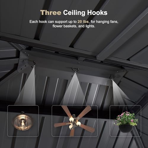 Convenient Ceiling Hooks: Heavy-duty integrated hooks securely hold lights, fans, or decorations. Transform your gazebo into an inviting entertainment space for family gatherings in moments.