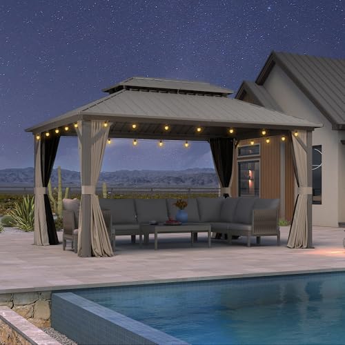 Sturdy Aluminum Structure: Rustproof aluminum frame and upgraded larger beams ensure the gazebo can endure winds of up to 40 mph.